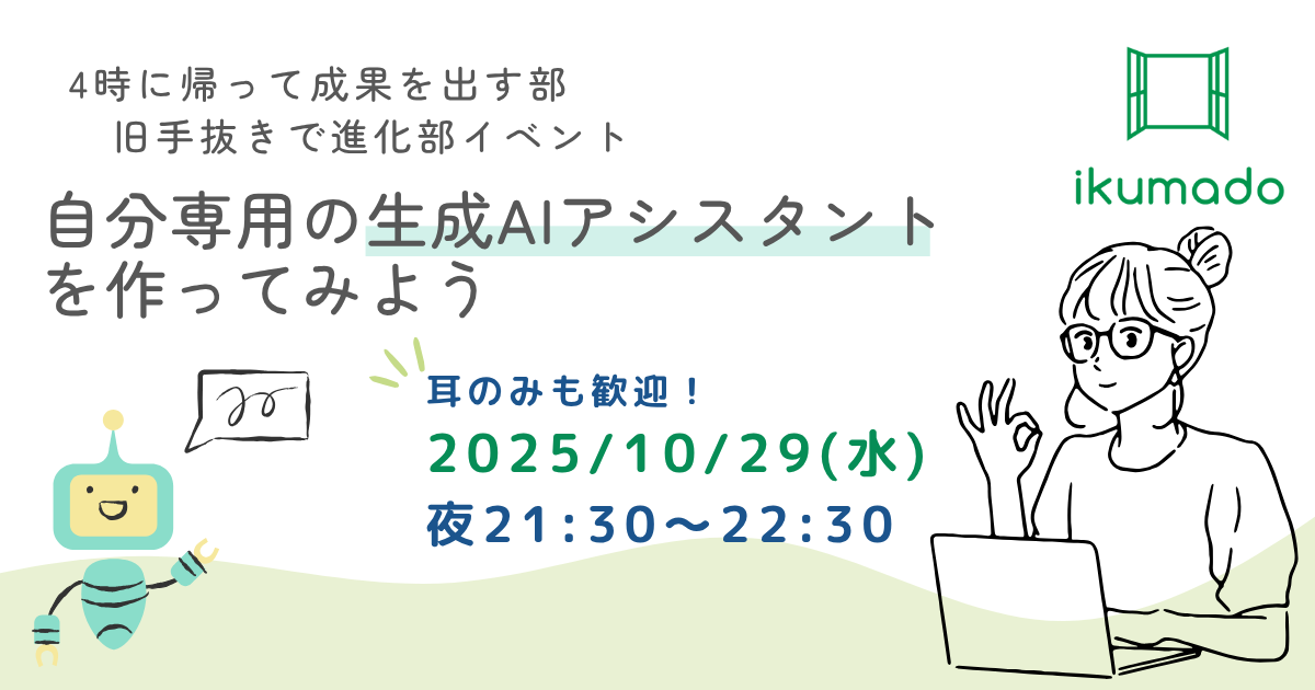 4時に帰って成果を出す部イベント 自分専用の生成AIアシスタントを作ってみよう 2025/10/29(水)21:30から ...