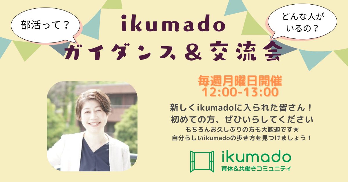 【定例イベント】毎週月曜日開催!ikumado代表・ちぎさんとも話せる「ikumadoガイダンス&交流会♪」※内部イベント※
