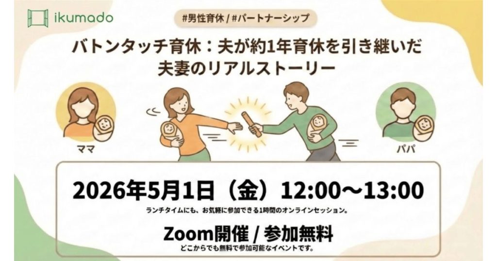 【イベント告知】バトンタッチ育休という選択 〜経験者夫妻が語るリアルとキャリア・夫婦関係の変化〜2026年5月1日(金)12:00-13:00
